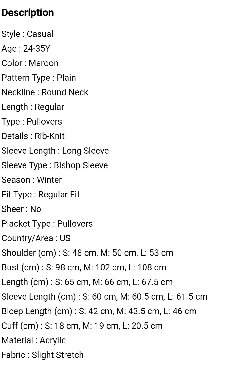 Sweater , rib knit , long sleeve , acrylic , slight stretch , casual