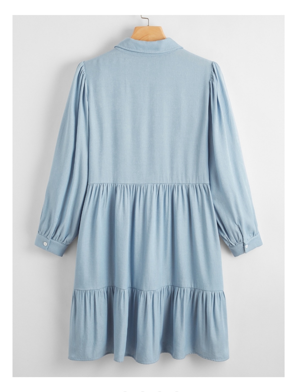 Dusty blue , button front , baby doll smock dress , collar