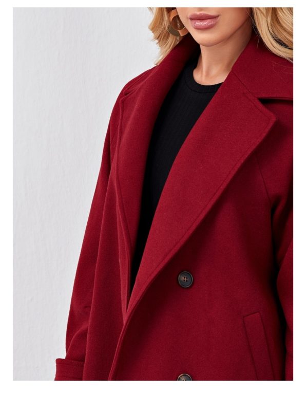 Elegant ,Burgundy , Pea coat , Double button , Long sleeve , Non stretch, wool mix fabric
